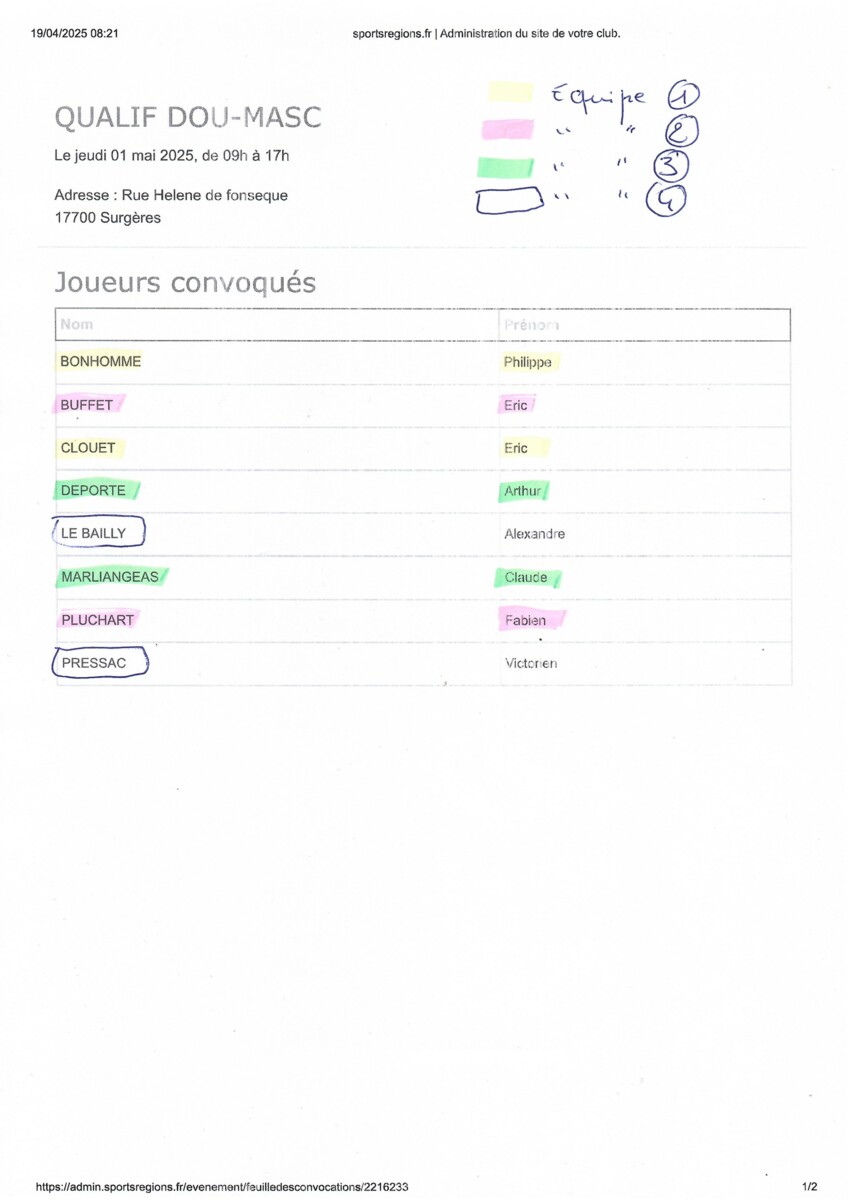 QUALIF DOU-MASC / Contre LICENCIÉS